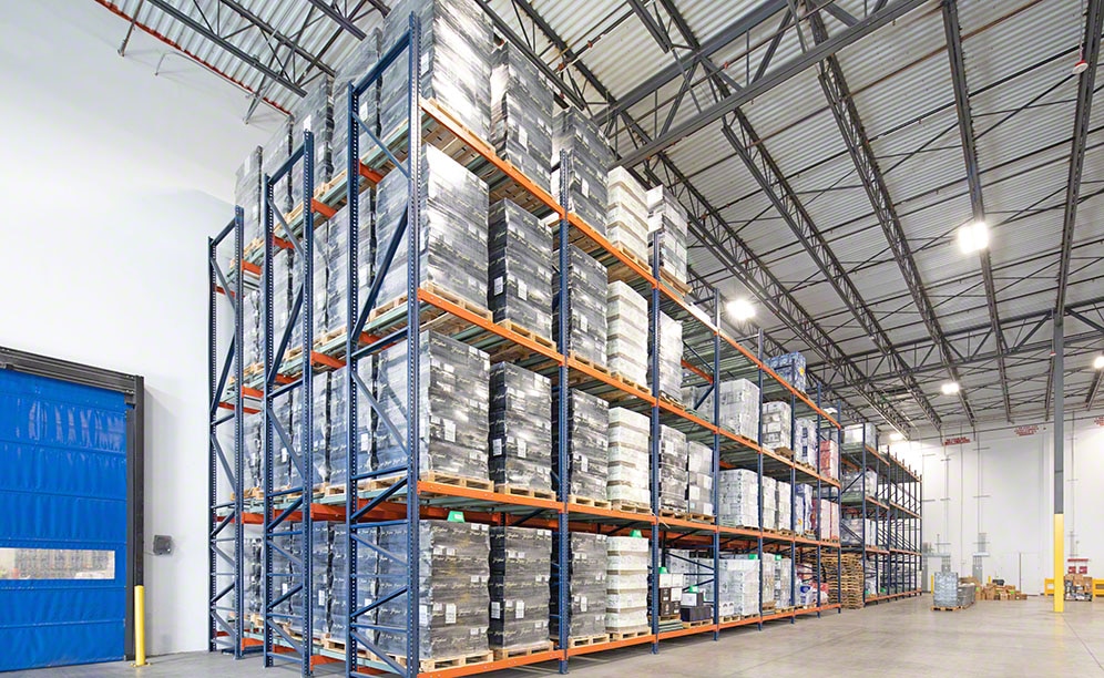 La bodega está formada por 31 pasillos con estanterías selectivas de simple profundidad a cada lado. Miden 9 m de altura (con cuatro a siete niveles) y dan cabida a 9.200 estibas GMA de 1.000 x 1.200 mm.
