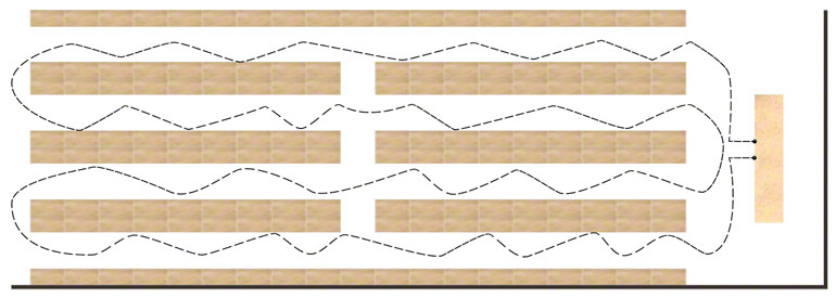 - Flujo medio: En este tipo de flujo, empiezan a complicarse los movimientos. Es el que suele encontrarse en bodegas con operaciones sencillas de picking o combinadas, generalmente, con el suministro de estibas completas.