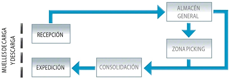Es un hecho que cada flujo añadido al sistema de trabajo es un costo más que se suma al cómputo general del proceso dentro del almacén. Cuanto mayor es el fraccionamiento que debe realizarse sobre las unidades de carga, más aumenta la incidencia sobre el costo. Las operaciones de picking son las que tienen más peso –hasta más del 60%– en el importe total de la operativa del almacén. De ahí la gran importancia que posee el diseño de estas áreas.